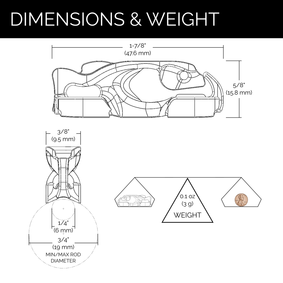 - Length: 1 7/8" (47.6mm)| Width: 3/8" (9.5mm) | Height: 5/8" (15.8mm)