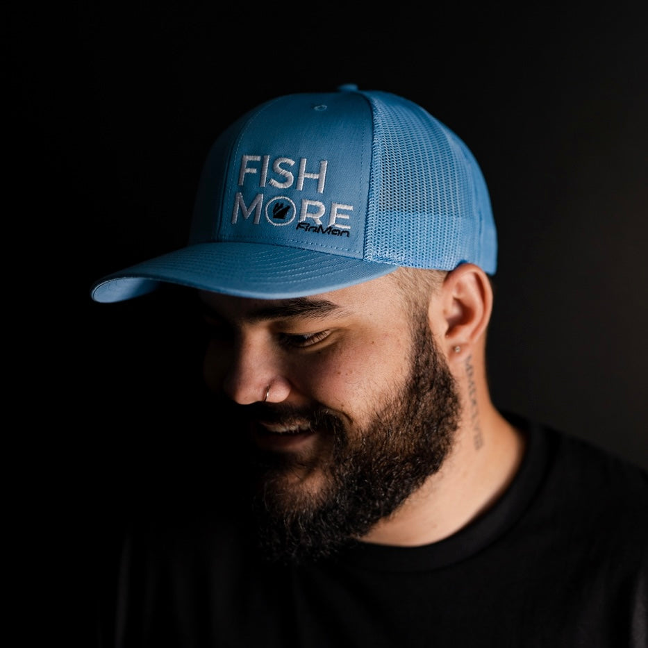 Look cool and stay protected while spending time on the water with this classic Fish More trucker hat. Crafted on the legendary Richardson 112 frame and embroidered with the subtle reminder to get outdoors and simply: FISH MORE
